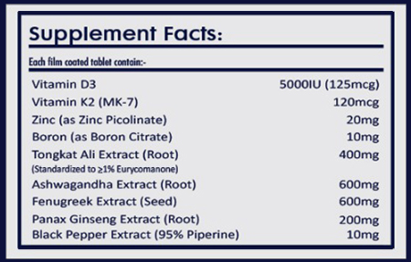 Our advanced testosterone support formula is packed with clinically studied ingredients like Tongkat Ali, Ashwagandha, Fenugreek, and Zinc to help naturally boost testosterone levels, enhance stamina, build lean muscle, and support hormonal balance. With Vitamin D3, K2, and Magnesium for immunity and energy, plus Black Pepper Extract for better absorption—this doctor-formulated blend helps you feel stronger, perform better, and live with renewed vitality.